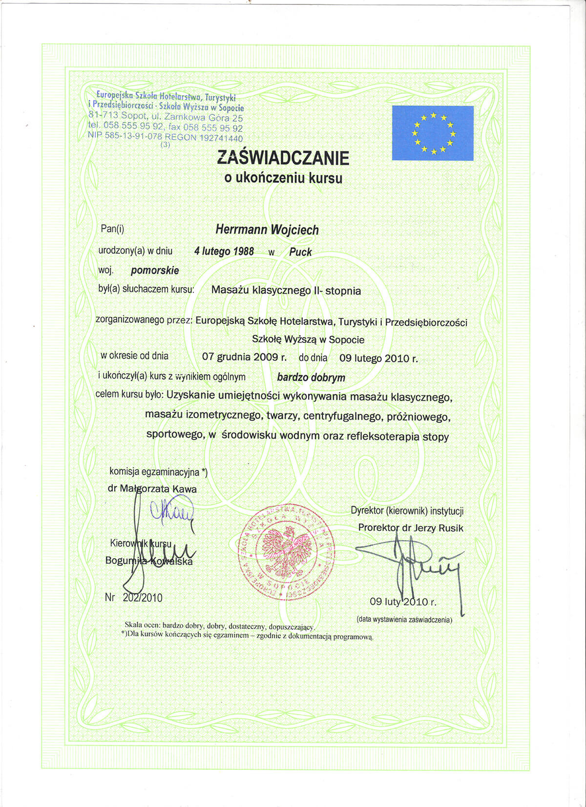 Przez cały okres pracy szkolę się w licznych zawodowych kursach.